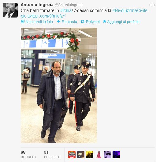 Per una beffa della storia, lontana dalla scomparsa, quella dialettica legalitaria riappare ora a sinistra dello schieramento elettorale. Uscita dalla porta principale è rientrata dall’ultima finestrella disponibile. La capitana Antonio Ingroia, magistrato salito agli onori della cronaca per le sue battaglie sulla trattative Stato-mafia con una lista di ricapitalizzazione per cinque partiti (Prc, Pdci, Verdi, Idv e Movimento Arancione di Luigi De Magistris) attorno, quella galassia di movimenti che in questi anni le lotte le hanno costituite.