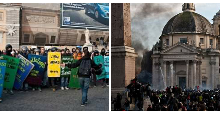 Quel giorno, per le vie di Roma, si manifestava contro la riforma Gelmini mentre in Senato, un “bivacco di manipoli” votava la fiducia al governo del Cavaliere. Dietro ad uno slogan semplice ma efficace come “Uniti contro la crisi” invece scendevano in piazza tutte quelle realtà già isolate e abbandonate da ogni circuito istituzionale: c’erano i terremotati de l’Aquila, il popolo avvelenato di Terzigno e Chiaiano, il movimento per l’acqua pubblica, i NoTav, i metalmeccanici di Pomigliano, gli operai che erano saliti a protestare sui tetti e i migranti sulle gru.